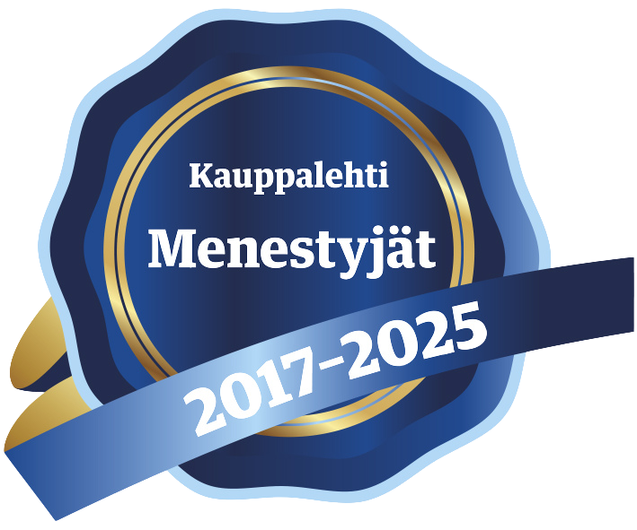 Meille on myönnetty kahdeksan vuotta peräkkäin (2017-2025) Kauppalehden Menestyjät- sertifikaatti, joka myönnetään alle kahdelle prosentille yrityksistä. Menestys saavutetaan yhteistyön avulla ja kiitos tästä saavutuksesta kuuluu ammattitaitoisille työntekijöillemme, asiakkaillemme sekä yhteistyökumppaneillemme.